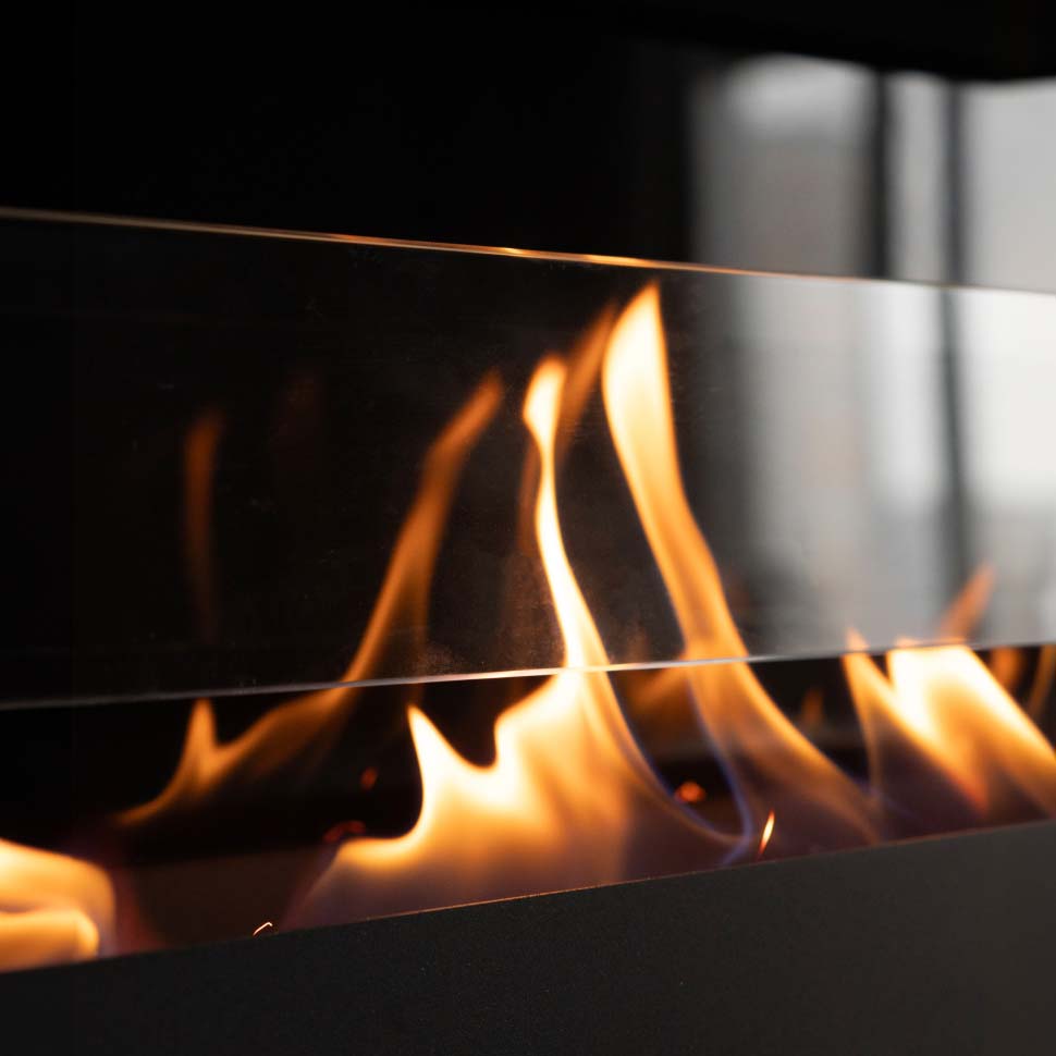 Защитное, закаленное стекло и стемалит на задней стенке очага создают зеркальное отражение и придают пламени увеличенный объем.